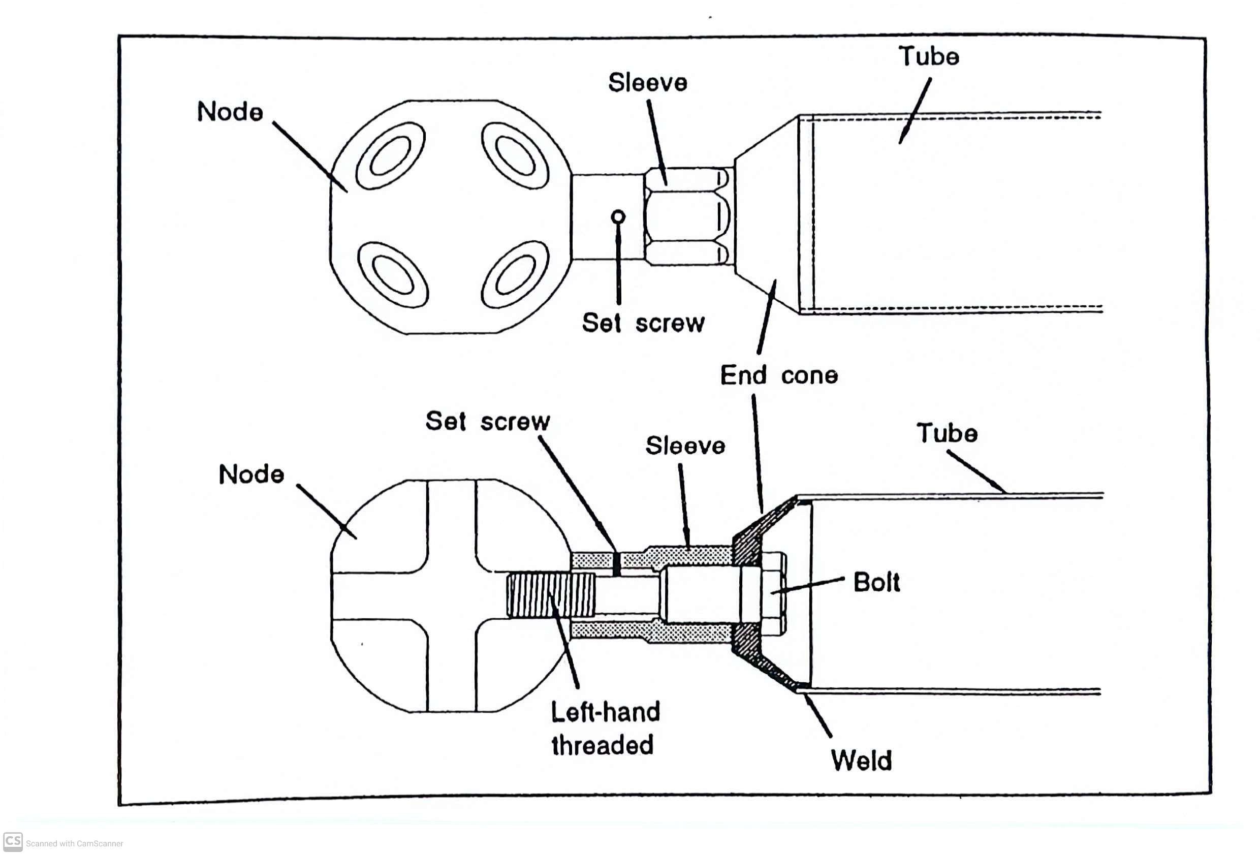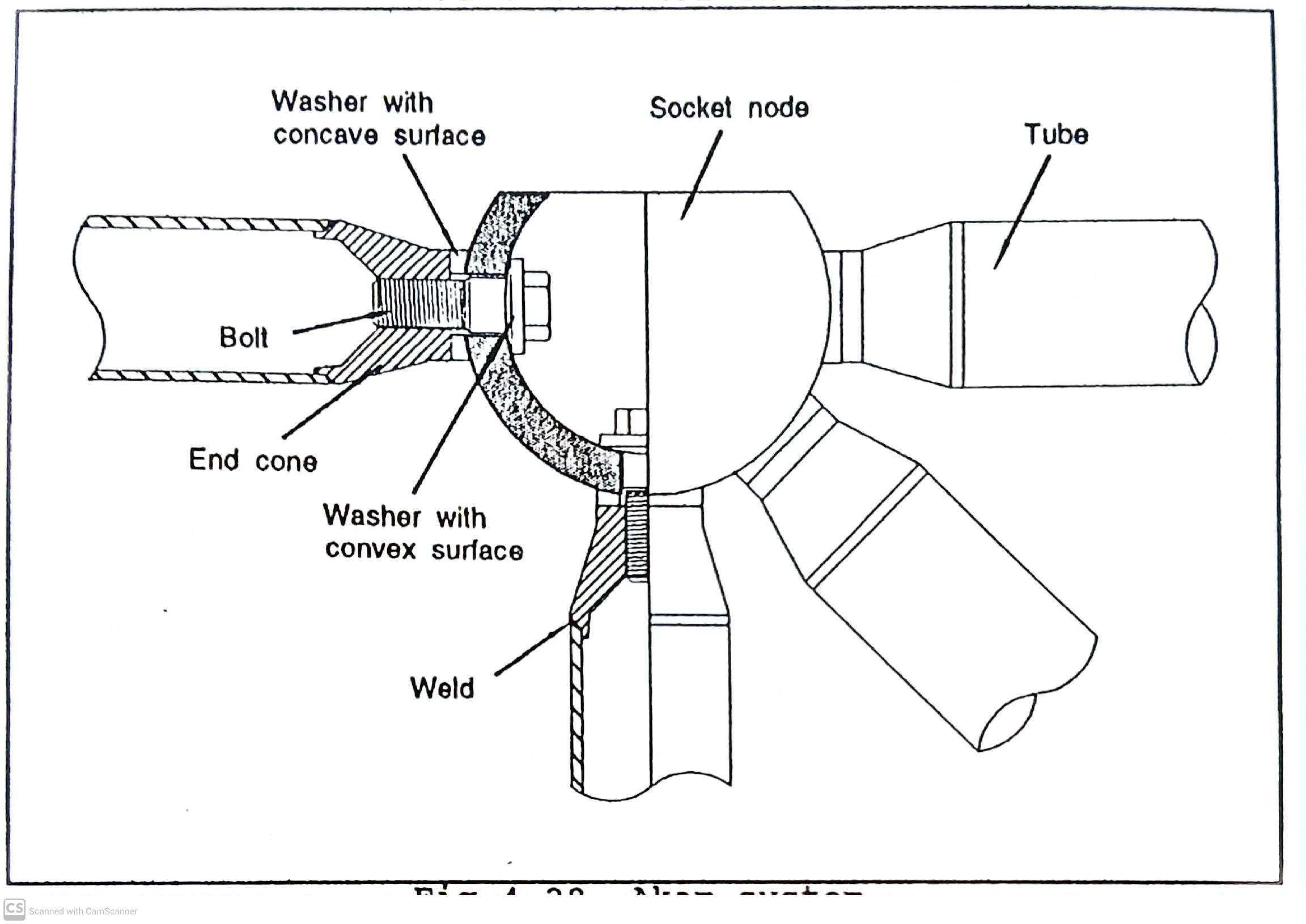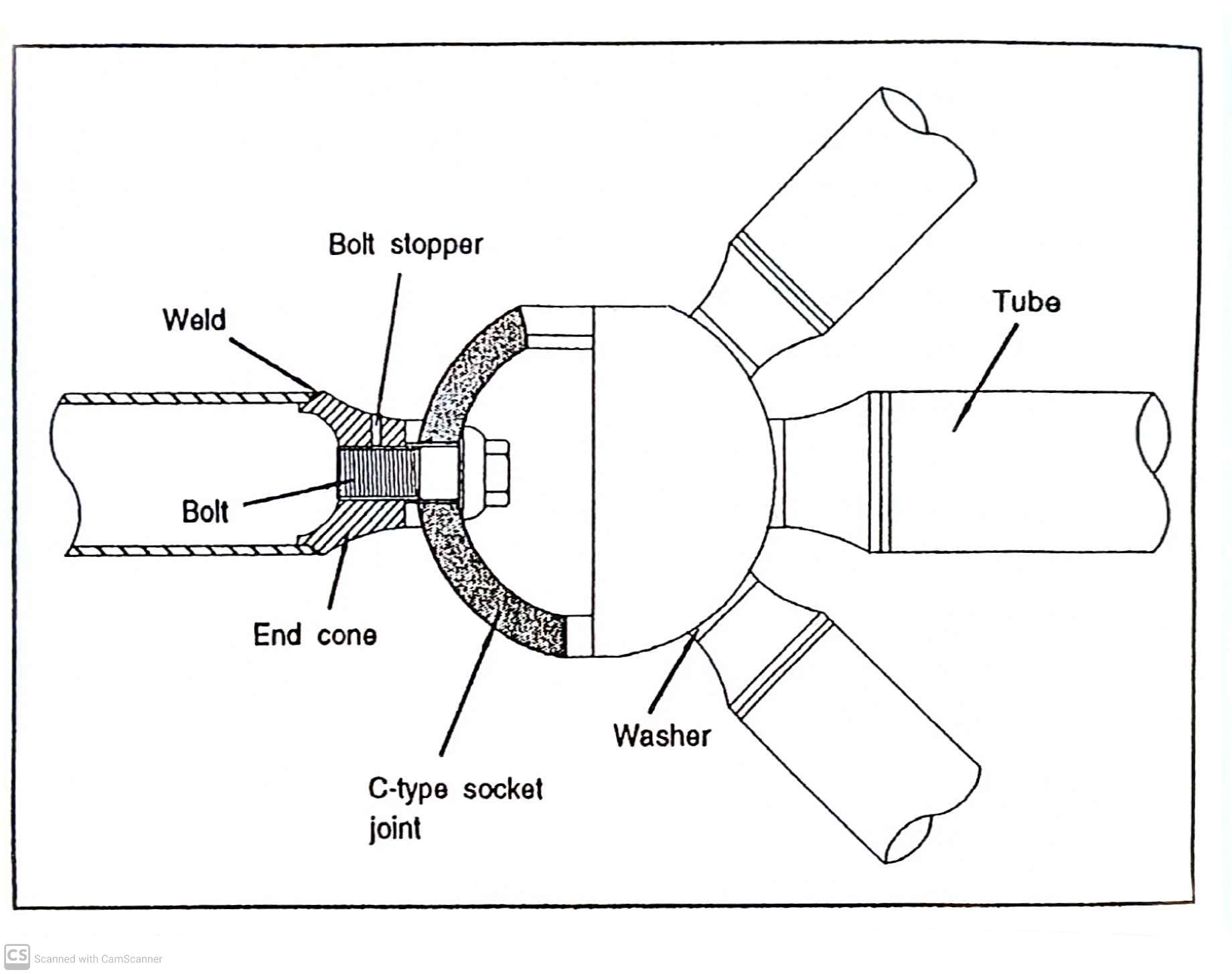 این اتصالات مربوط به شرکت آکام فلز بوده که زیر رده پیوندهای نیامی می باشد. اجزا این سیستم شامل گویهای توخالی و مخروطی رزوه شده و واشر محدب و پیچ معمولی با کلاس سختی بالا می باشد از مزایا این سیستم تعداد اجزا کمتر نسبت به اتصالات متداول دیگر و استفاده از پیچ های ساده می باشد و از معایب آن محدودیت استفاده